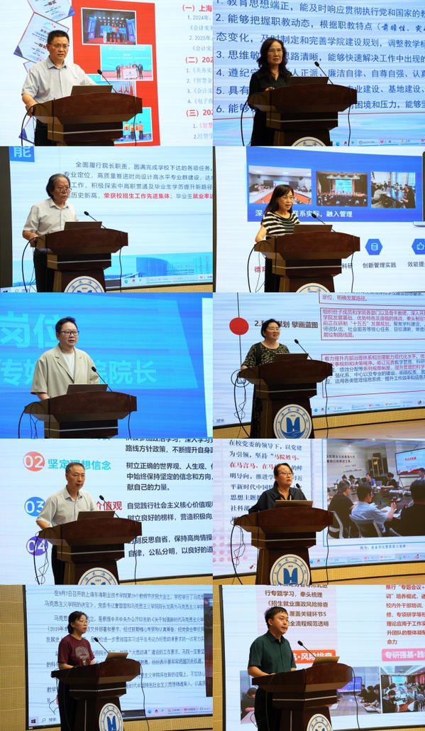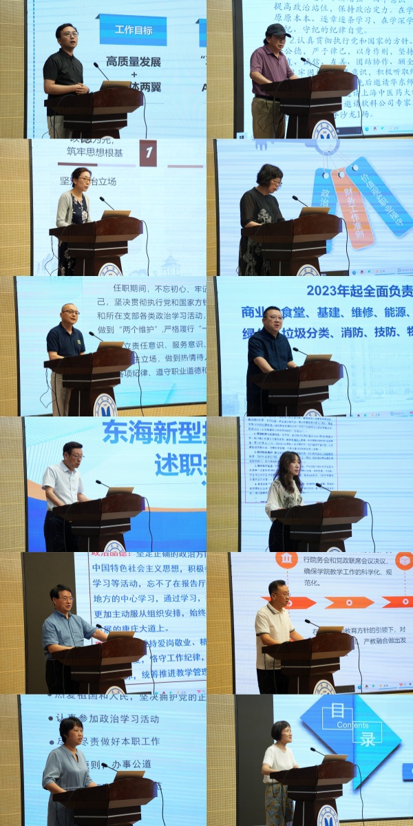 会上,各教学单位、党政管理部门及直属部门的中层干部围绕两年任期内的履职情况、存在问题和未来工作规划等方面进行了全面述职。与会人员认真听取了述职报告,并开展了现场测评。