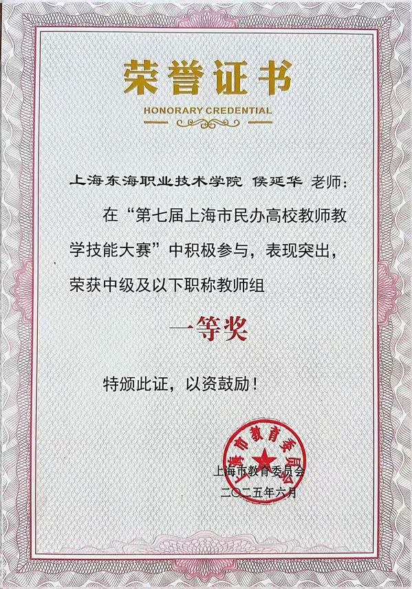 我校教师侯延华荣获第七届上海市民办高校教师教学技能大赛一等奖