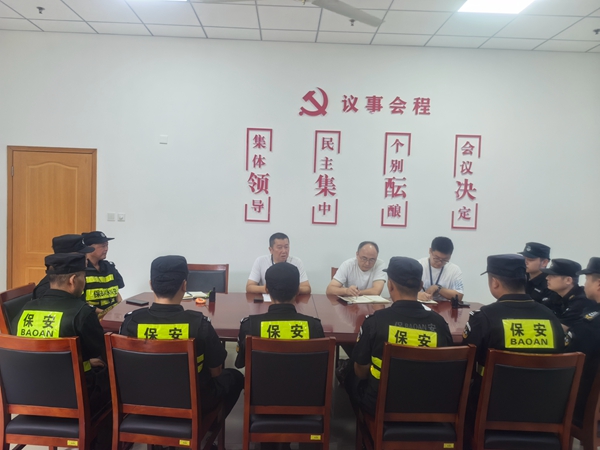 为切实保障暑期校园安全稳定,7月11日上午,后勤保卫处在东海源南201会议室组织召开2025年暑期校园安全工作专题部署会。校园安保人员、消(监)控室工作人员、物业代表等一线工作人员参会,会议由保卫处处长张政军主持。