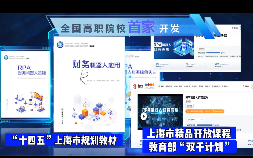 《RPA机器人财务应用》课程作为上海市精品在线开放课程,2025年成功入选教育部“双千计划”,其配套教材为“十四五”规划教材,充分体现了课程的前沿性与实践价值。四位教师将行业最新的RPA技术与企业财务实践深度融合,以真实的财务场景为教学案例,生动展现了职业教育“岗课赛证”融通的育人理念,实现了“立德树人”与专业教学的无缝衔接。
