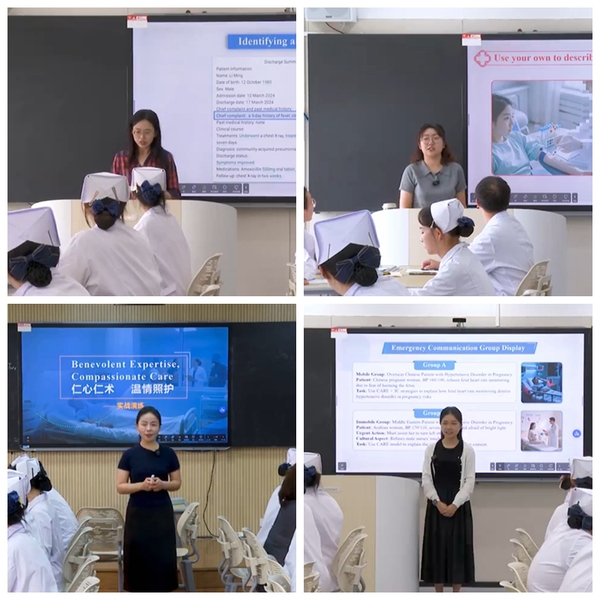 《职场(护理)英语》是职场英语和专业英语的先导课程,以2021版新课标《高职英语》为指导文件,四位教师通过注重发展学生“职场涉外沟通”“多元文化交流”“语言思维提升”和“自主学习完善”四项英语学科核心素养,培养具有中国情怀、国际视野、能够在日常生活和职场生活中用英语进行有效沟通的高素质人才。