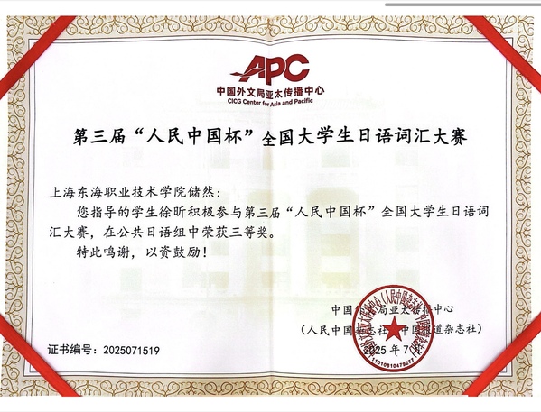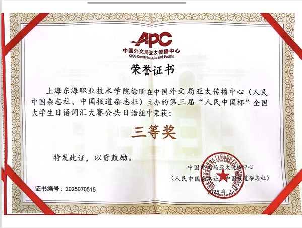 喜报 东海学生在第三届“人民中国杯” 大学生日语词汇大赛中斩获佳绩