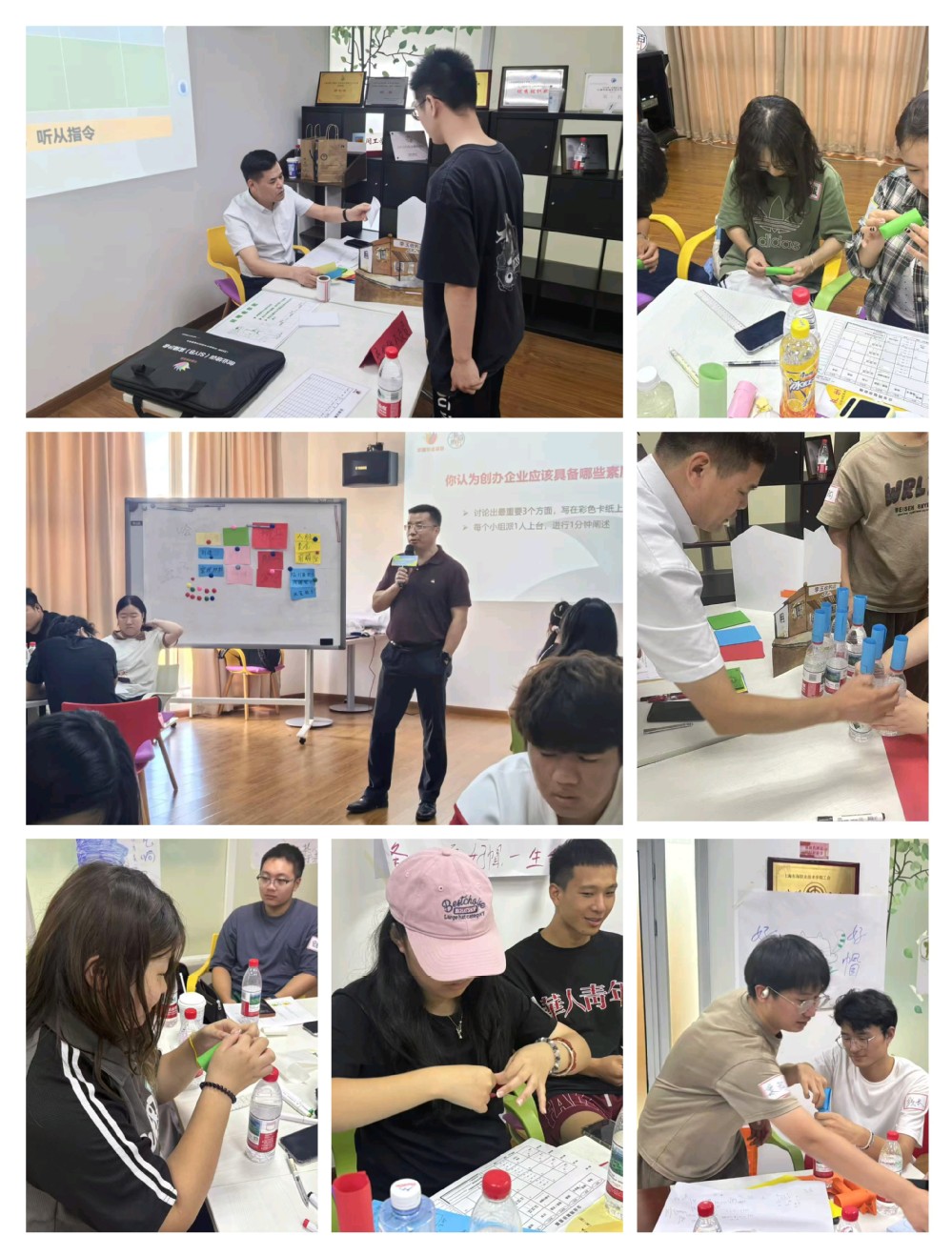 本次培训是学校持续深化创新创业教育改革、夯实“以练促学”模式的重要实践,面向校内择优遴选的学员开展集中赋能培训。本次专场培训由上海创业指导专家志愿团闵行分团工委会理事、上海日臻投资管理有限公司合伙人宋涛和上海市闵行区人大代表、上海暖心家政服务公益促进中心创始人兼理事长李尉带领学员们逐步深入创业知识体系,通过理论讲授、案例剖析、分组演练及沙盘模拟等多种形式,引导学员从自我创业素质评估入手,逐步学习如何产生企业想法、筛选创业项目并最终构建出完整可行的企业构思,有效提升了学员们在创新思维、团队协作、项目构建及路演表达等方面的综合能力。