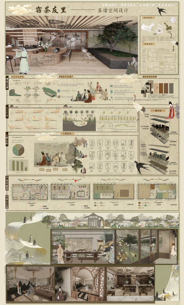 一等奖 环艺222宋梓垚、环艺231刘玫妤《窃茶友里—茶馆室内设计》