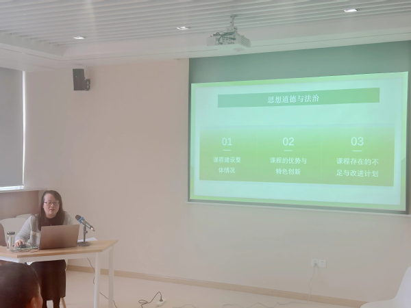 活动伊始,马克思主义学院院长龙燕从课程建设整体情况、课程建设优势与特色创新、课程建设的不足与改进计划三方面分享了《思想道德与法治》课程的建设经验;经管学院副院长吕薇围绕课程设计、课程建设、课程实施、教学效果、特色创新五方面对《Python财经应用》课程进行介绍。