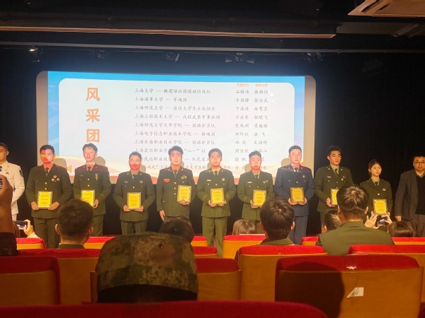 11月19日下午,由上海市教育委员会、上海市人民政府征兵办公室、上海市退役军人事务局联合主办的2025年第五届“闪耀的星 最美的你”上海市高校退役大学生士兵风采展示活动总结表彰大会在上海大学举行。我校国旗护卫队荣获“风采团队”奖,退役大学生士兵吴华崽荣获“风采之星”提名奖,艺术设计学院陆毅辉同学的作品《并肩》荣获“优秀文创作品”奖,充分展现了东海学子投身国防、砥砺奋进的精神风貌与卓越风采。