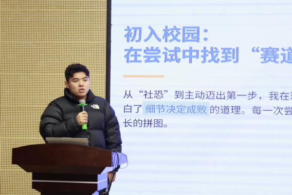 曾任学院学生会主席的宋金来同学,从学生会主席的责任与担当、如何平衡学业与学生工作、提升个人核心能力等方面进行分享。建议学弟学妹们做好时间管理,掌握沟通艺术,积极参与实践创新活动。