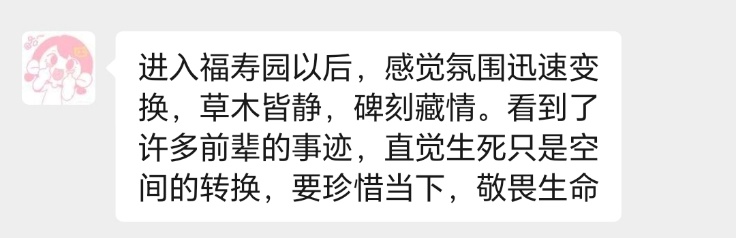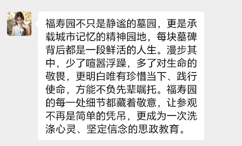 在福寿园相关负责人的生动讲述中,以东海老校长夏征农等为代表的先贤事迹,深深触动了在场的同学们。大家在肃穆的氛围中深切感悟到生命的奉献、传承与超越,完成了一次深刻的精神洗礼。