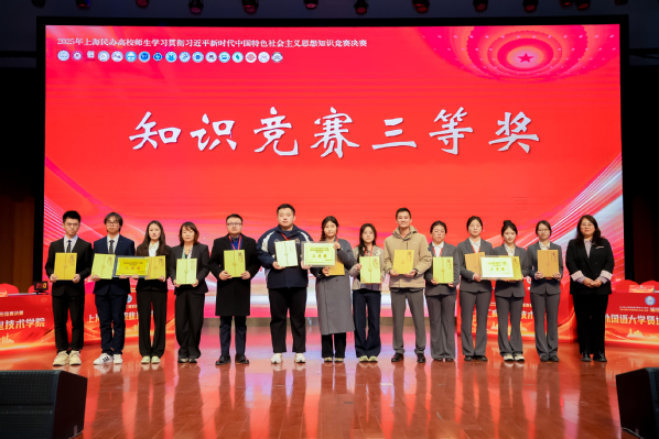 11月28日,由上海市民办教育综合党委指导、上海工商职业技术学院主办的"学用新思想 建功新时代"2025年上海民办高校师生学习贯彻习近平新时代中国特色社会主义思想知识竞赛圆满落幕。上海东海职业技术学院代表队在本次竞赛中荣获三等奖,展现了我校师生扎实的理论功底和昂扬的精神风貌。