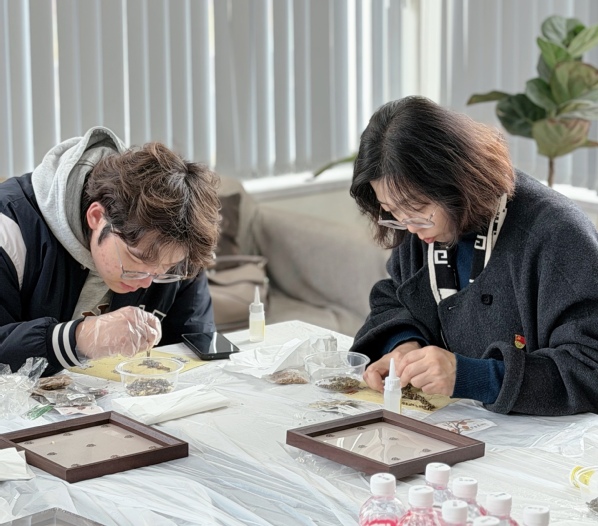 最后,在专业老师的指导下,党员们参与了“非遗匠心·中草药创意画”手工制作活动。大家从认识草药、了解其特性入手,亲手摆弄各类中草药素材,发挥创意进行构图粘贴,在“就地取材、因材施艺”的非遗智慧中,完成了一幅幅独具韵味、可长久保存的天然艺术品。此次实践,不仅让大家领略了中医药文化的自然美感与哲学内涵,更使之前所见所闻的“工匠精神”内化于心,增强了文化自信与使命担当。
