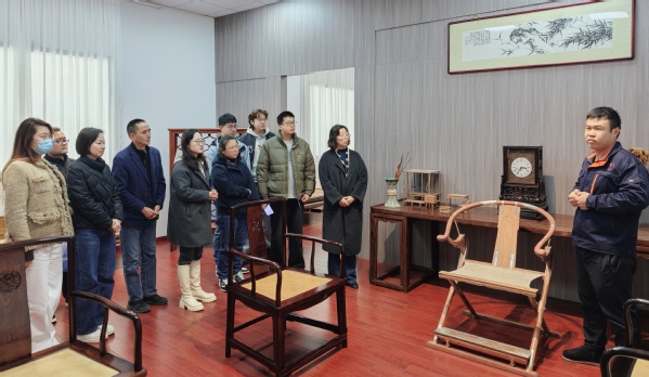 党员首先参观崇木堂。此处是上海工匠、闵行区非遗项目“古旧木器修缮技艺”代表性传承人袁金祥大师的创新工作室。在弥漫着木香与陈列着精美器物的室内,大家聆听了袁大师半生坚守、与木为伴的初心故事。党员们近距离观赏了其精心复刻的明式家具珍品,从榫卯结构的精巧、木纹色泽的温润中,深刻领悟到“精益求精、执着坚守”的工匠精神所蕴含的“大美之道”。
