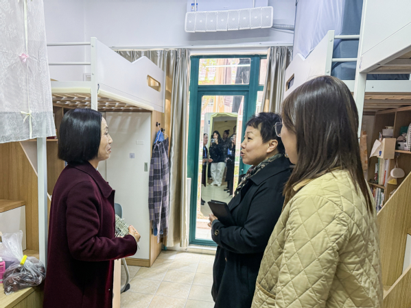 午餐交流后,王玉一行前往六号楼学生宿舍走访查看。她实地检查居住环境,细致叮嘱同学们要增强安全意识,保持宿舍卫生,共同筑牢安全卫生防线,营造整洁有序的生活空间。