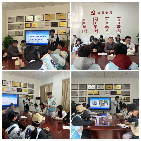 12月25日中午,大学生平安志愿者行动支队总结会在东海源南201室召开。保卫处指导老师、志愿服务代表及骨干成员共同回顾本学期工作成果,展望下一阶段发展目标。